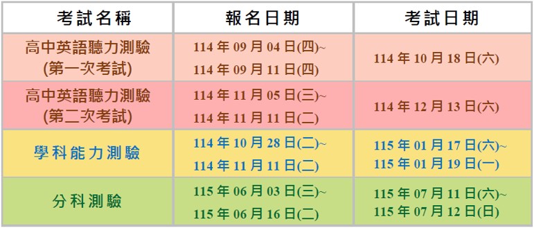 115學年英聽學測考試分科測驗簡章於114年8月5日(二)公告與發售。