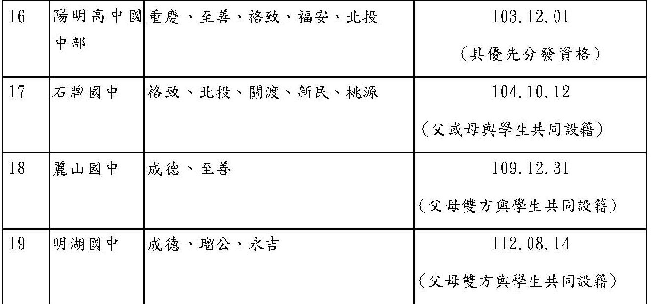 【情報】114年台北市國中國一七年級入學額滿學校 23所須事先設籍學校