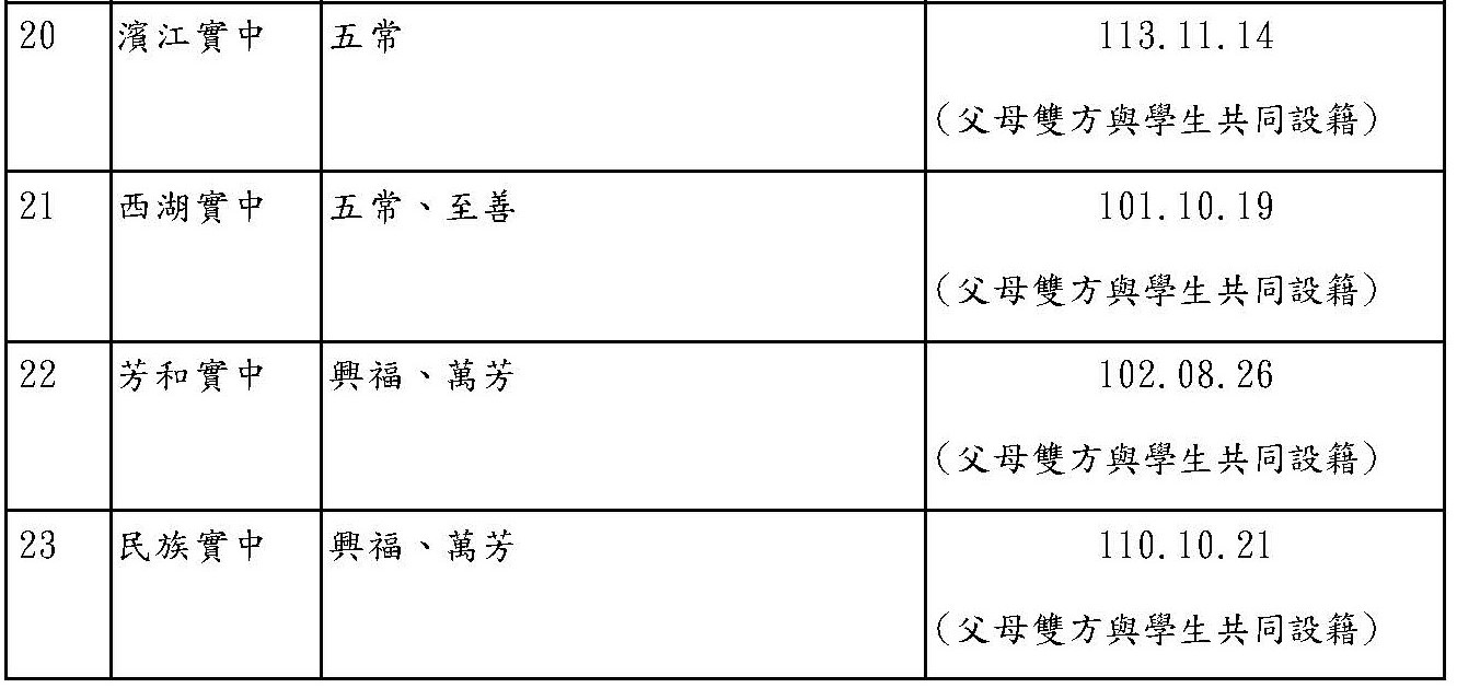 114年台北市國中國一七年級入學額滿學校 23所須事先設籍學校