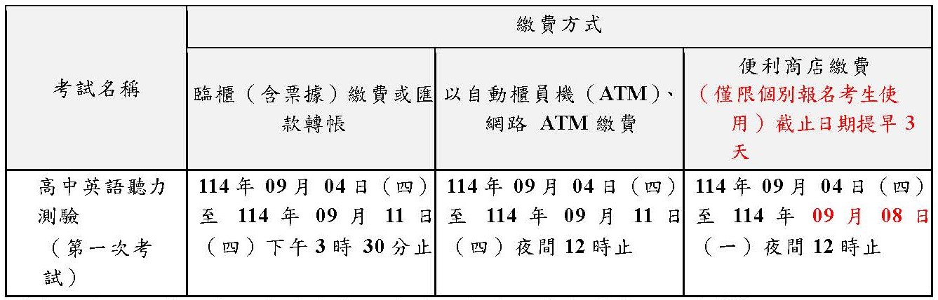 【情報】115 學年高中英聽測驗第一次考試 報名自9月4日至11日 10月18日考試